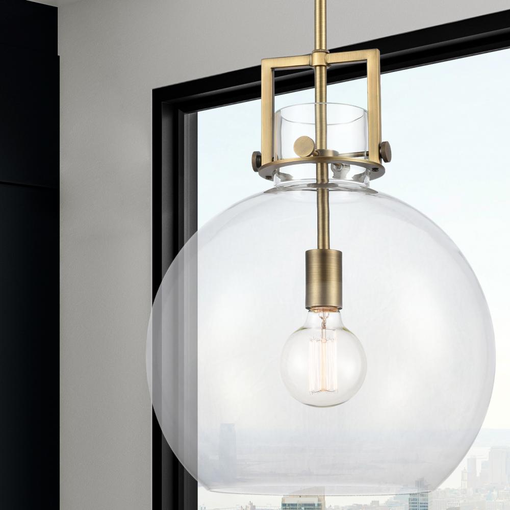 Newton Sphere - 1 Light - 14 inch - Brushed Brass - Clear Shade - Pendant