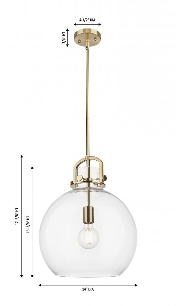 Newton Sphere - 1 Light - 14 inch - Champagne Bronze - Clear Shade - Pendant