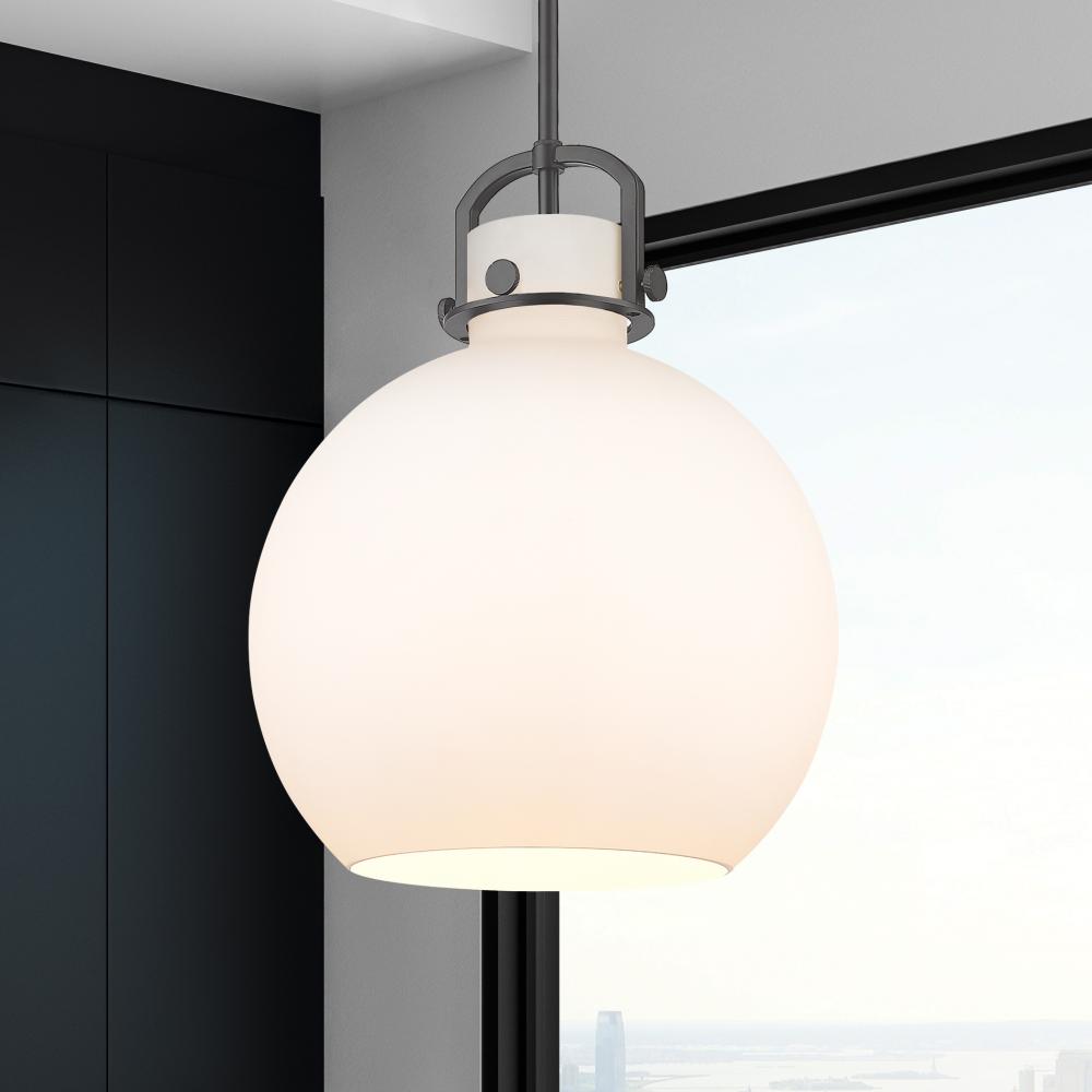 Newton Sphere - 1 Light - 14 inch - Matte Black - White Shade - Pendant