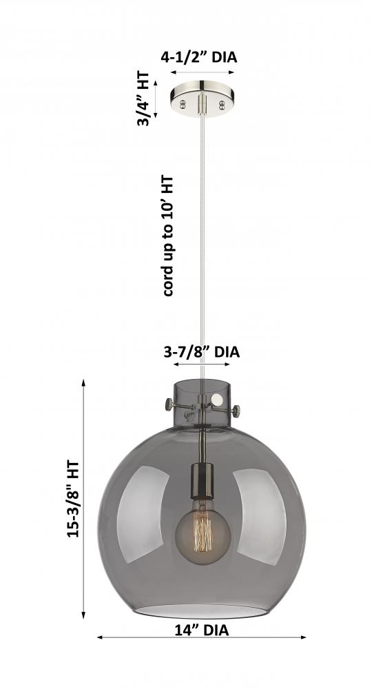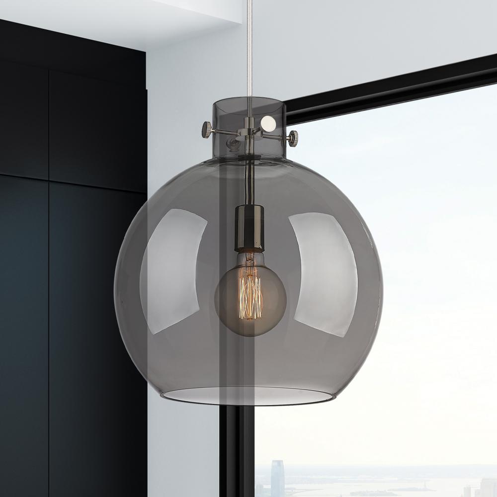 Newton Sphere - 1 Light - 14 inch - Polished Nickel - Light Smoke Shade - Cord hung - Pendant