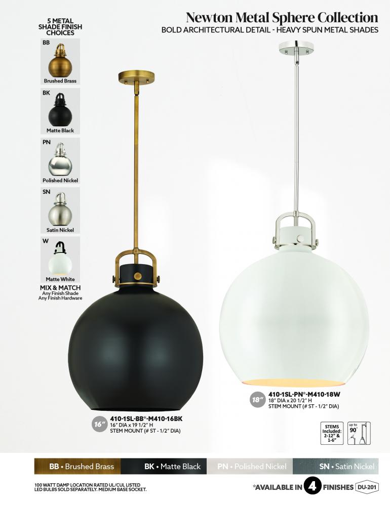 The Newton Sphere is a modern industrial collection that incorporates exceptional architectural details with a beautiful globe shaped shade. The iconic sphere shaped shade is available in either glass or heavy spun metal, making this collection perfect fo