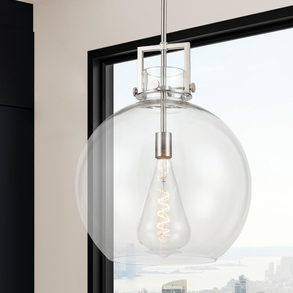 Newton Sphere - 1 Light - 16 inch - Satin Nickel - Clear Shade - Pendant