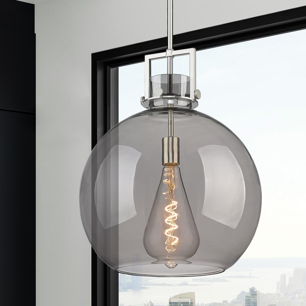 Newton Sphere - 1 Light - 16 inch - Satin Nickel - Light Smoke Shade - Pendant