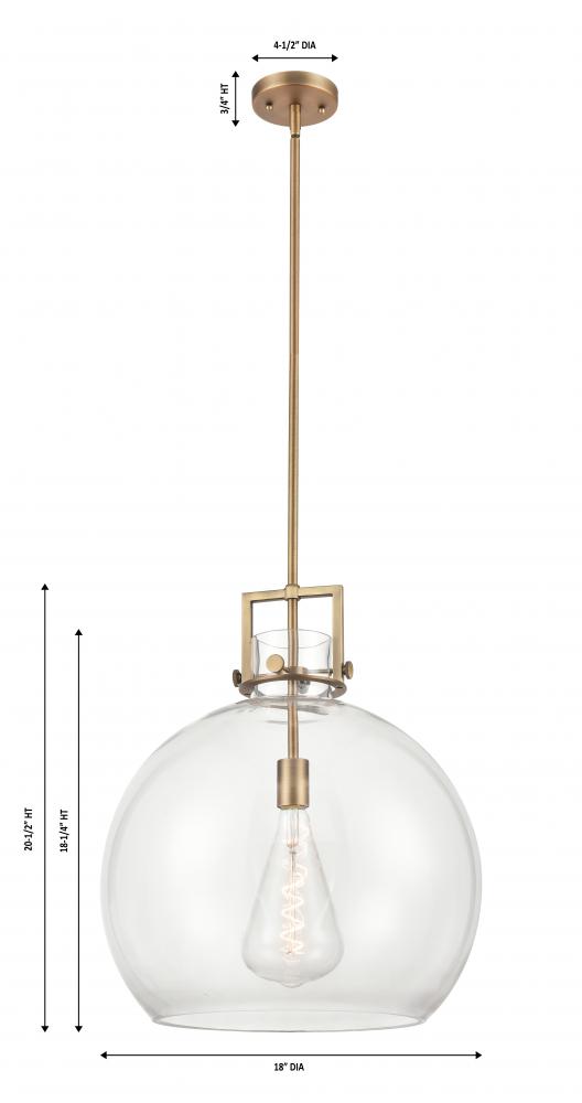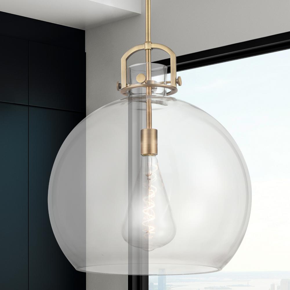 Newton Sphere - 1 Light - 18 inch - Brushed Brass - Clear Shade - Pendant