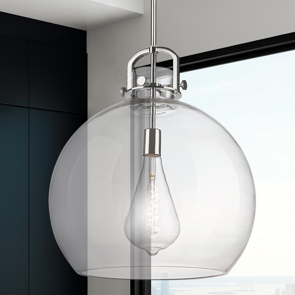 Newton Sphere - 1 Light - 18 inch - Polished Nickel - Clear Shade - Pendant