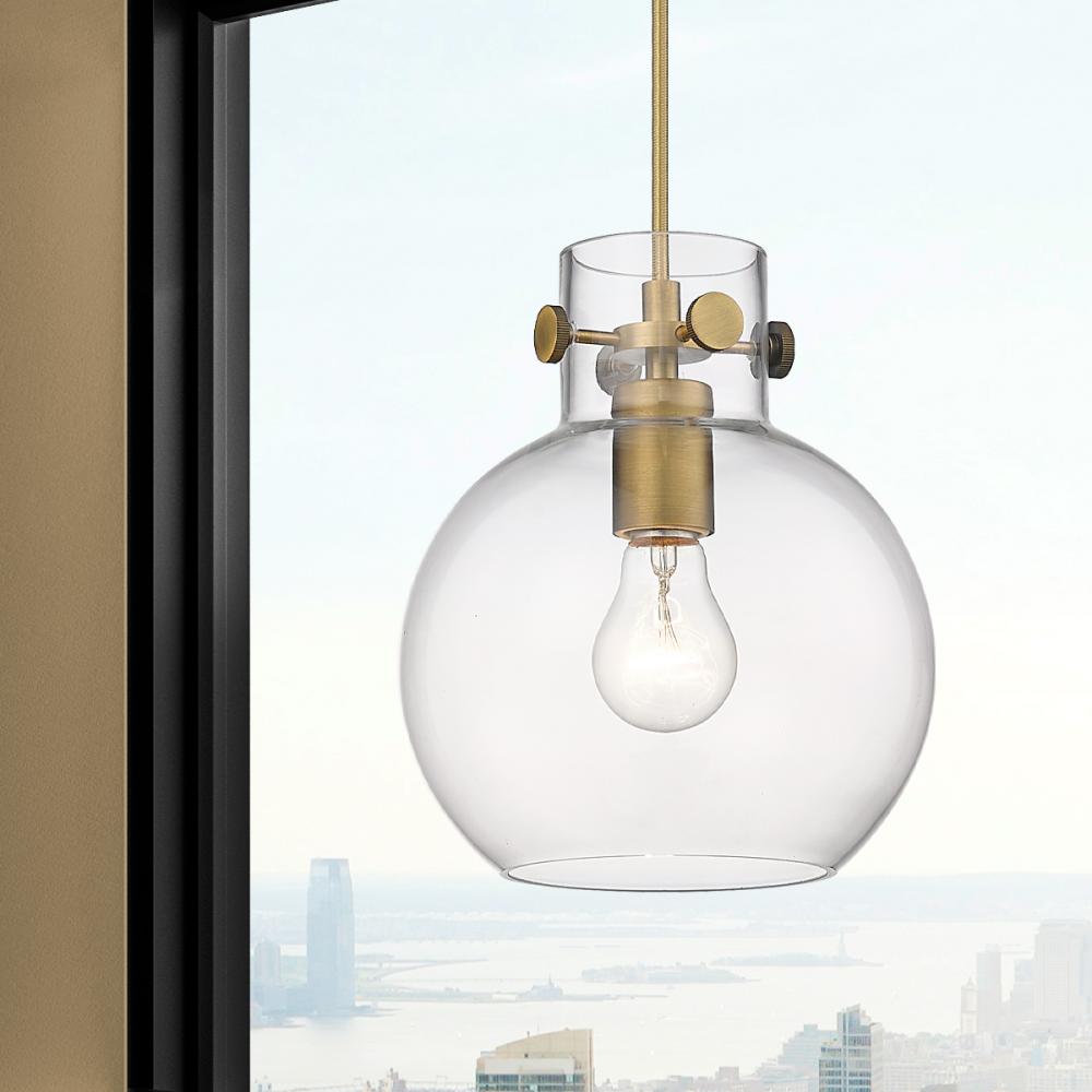 Newton Sphere - 1 Light - 8 inch - Brushed Brass - Clear Shade - Cord hung - Pendant