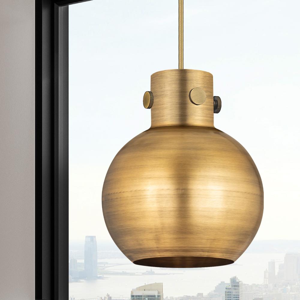 Newton Sphere - 1 Light - 8 inch - Brushed Brass - Brushed Brass Shade - Cord hung - Pendant