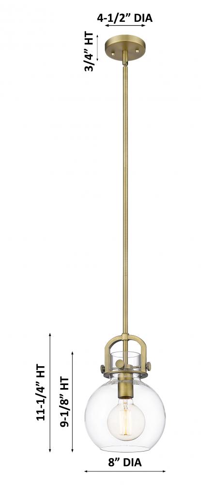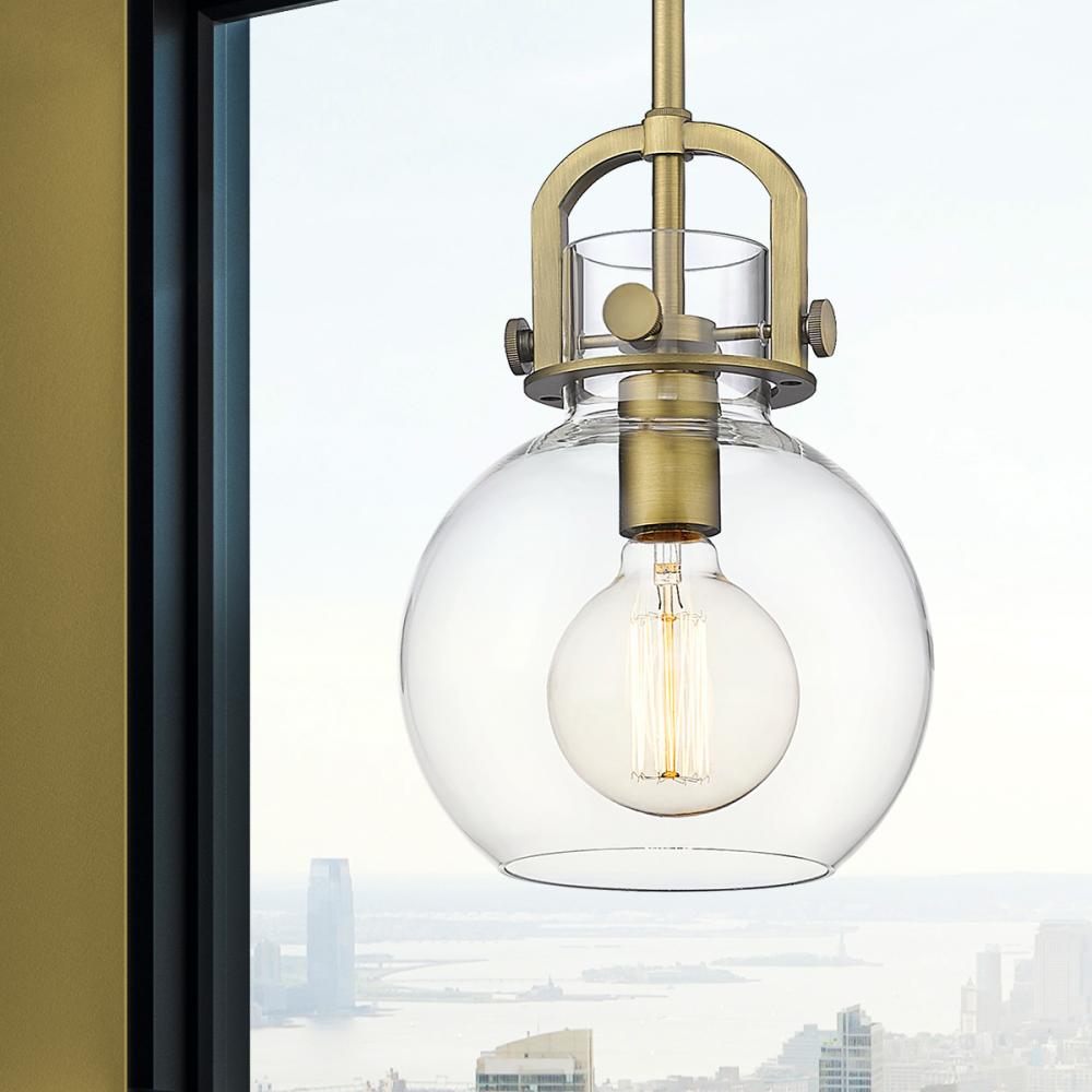 Newton Sphere - 1 Light - 8 inch - Brushed Brass - Clear Shade - Mini Pendant