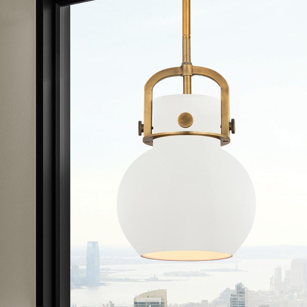 Newton Sphere - 1 Light - 8 inch - Brushed Brass - Matte White Shade - Mini Pendant