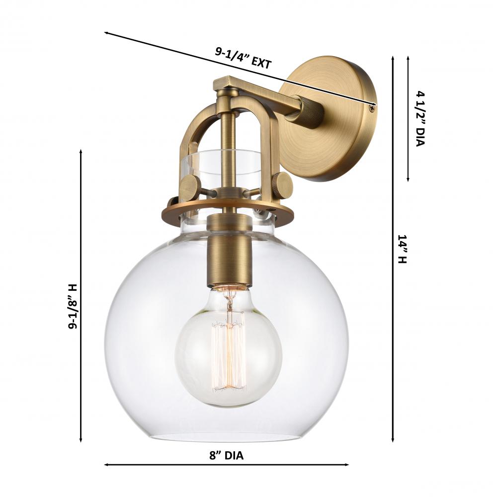 Newton Sphere - 1 Light - 8 inch - Brushed Brass - Clear Shade - Sconce