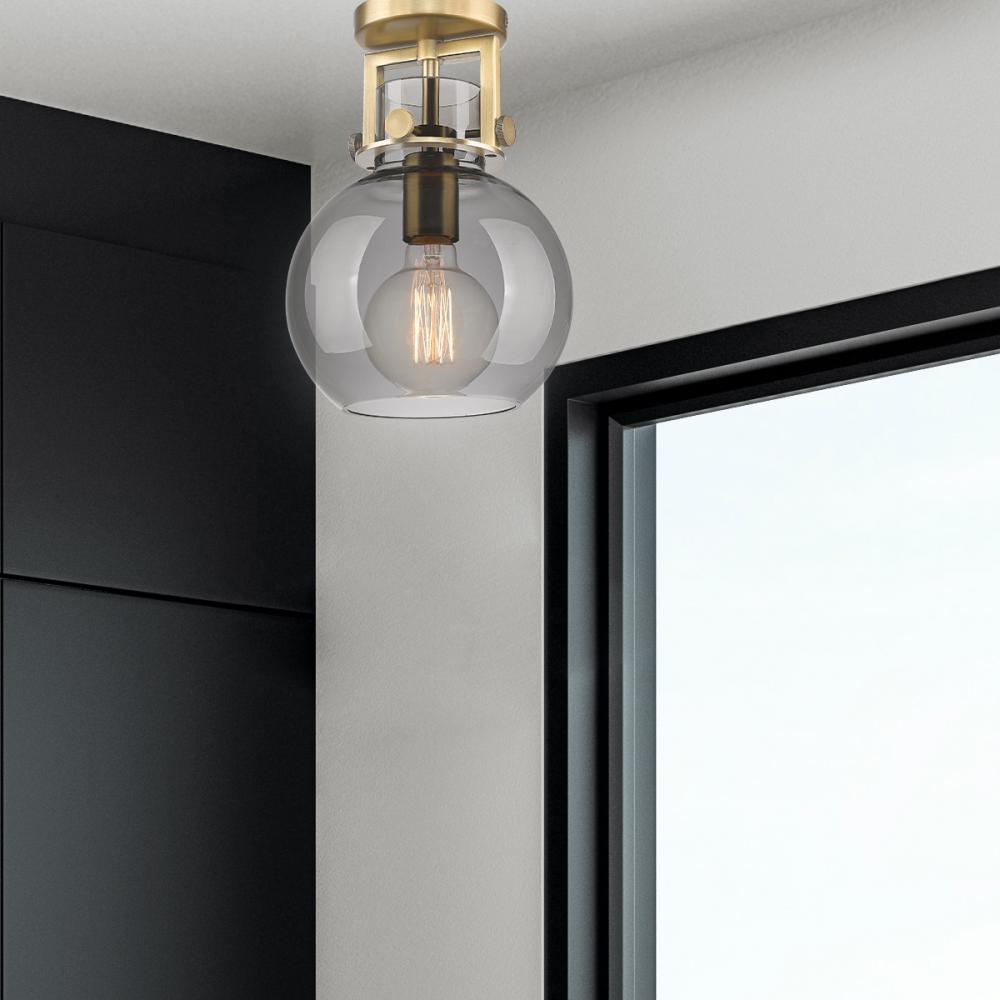 Newton Sphere - 1 Light - 8 inch - Brushed Brass - Light Smoke Shade - Semi-Flush Mount