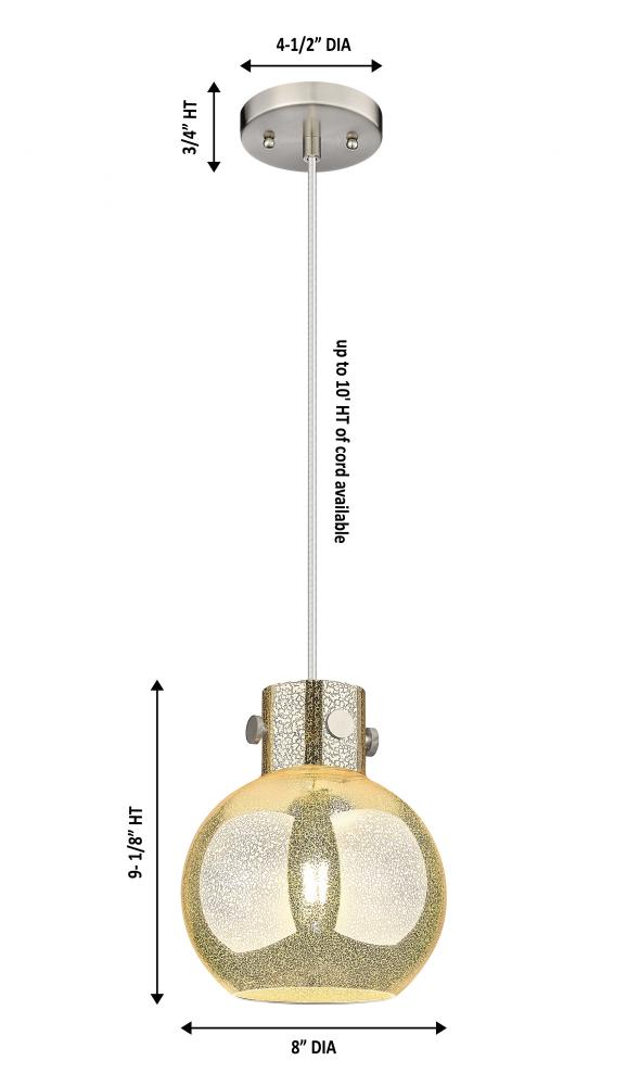 Newton Sphere - 1 Light - 8 inch - Brushed Satin Nickel - Mercury Shade - Cord hung - Mini Pendant