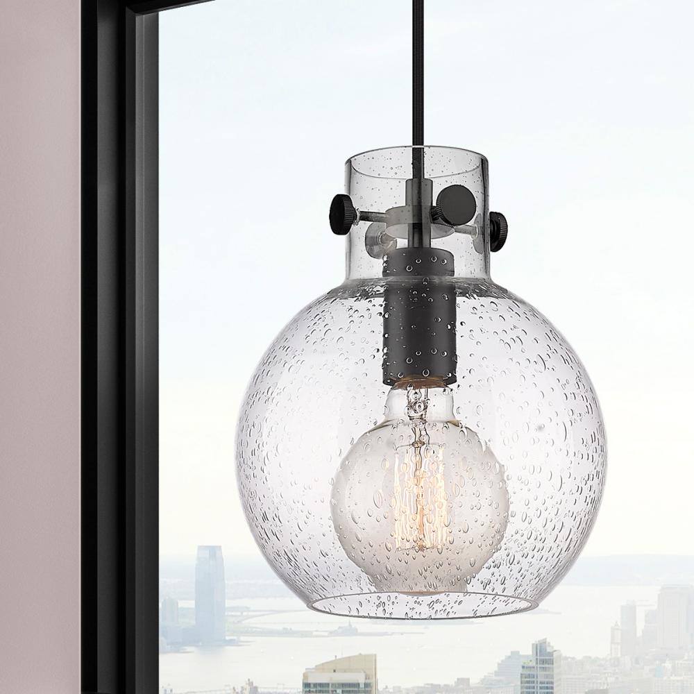 Newton Sphere - 1 Light - 8 inch - Matte Black - Seedy Shade - Cord hung - Mini Pendant