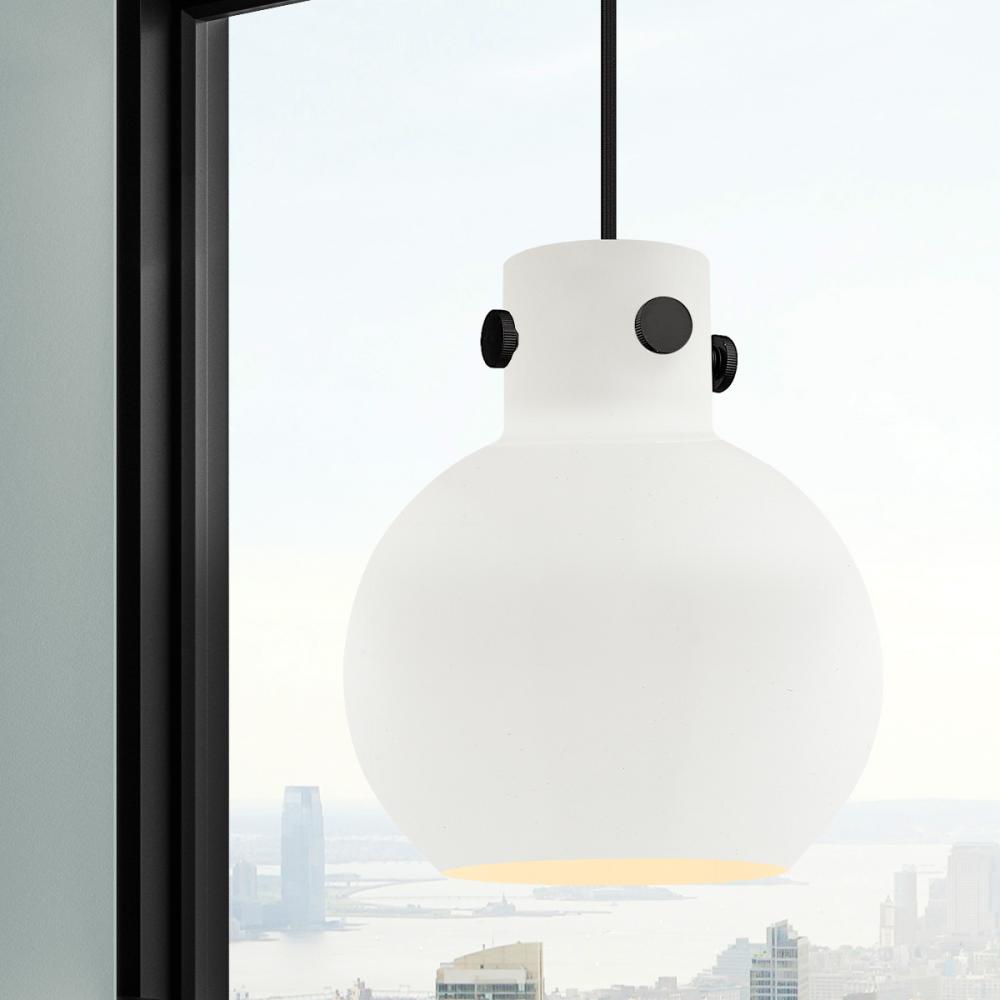 Newton Sphere - 1 Light - 8 inch - Matte Black - Matte White Shade - Cord hung - Pendant