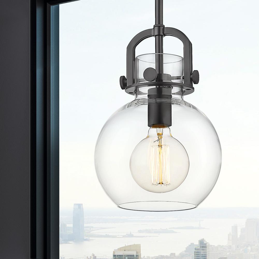 Newton Sphere - 1 Light - 8 inch - Matte Black - Clear Shade - Mini Pendant