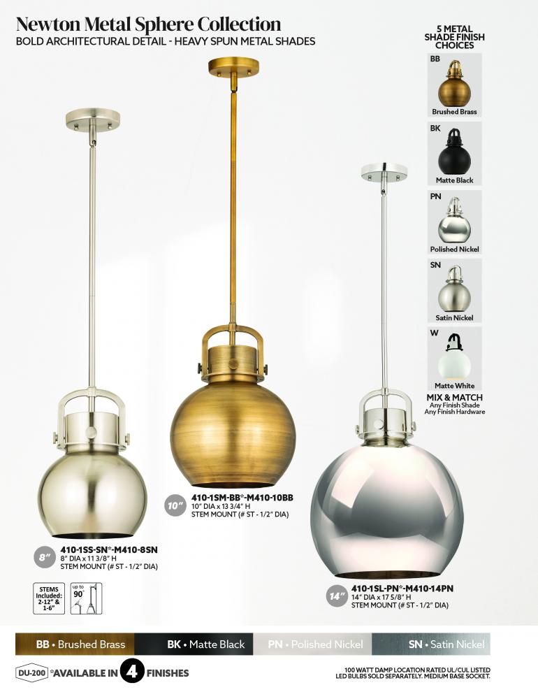 The Newton Sphere is a modern industrial collection that incorporates exceptional architectural details with a beautiful globe shaped shade. The iconic sphere shaped shade is available in either glass or heavy spun metal, making this collection perfect fo