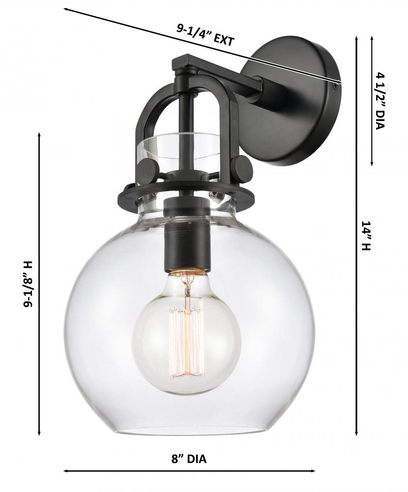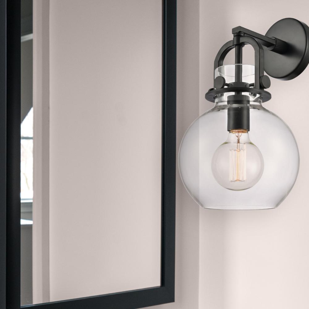Newton Sphere - 1 Light - 8 inch - Matte Black - Clear Shade - Sconce