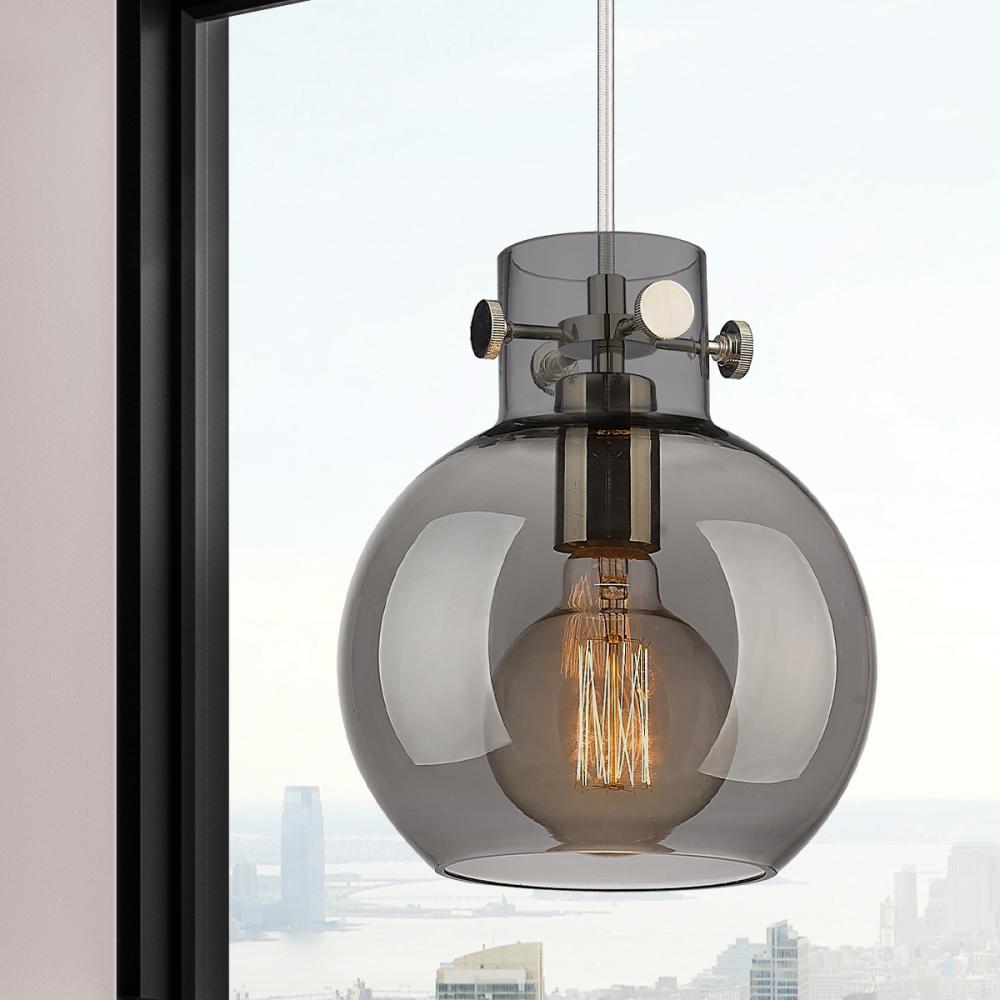 Newton Sphere - 1 Light - 8 inch - Polished Nickel - Light Smoke Shade - Cord hung - Mini Pendant