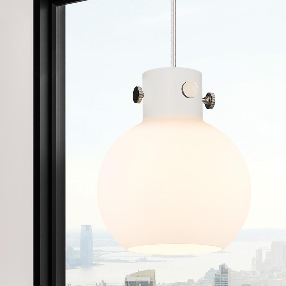 Newton Sphere - 1 Light - 8 inch - Polished Nickel - White Shade - Cord hung - Mini Pendant