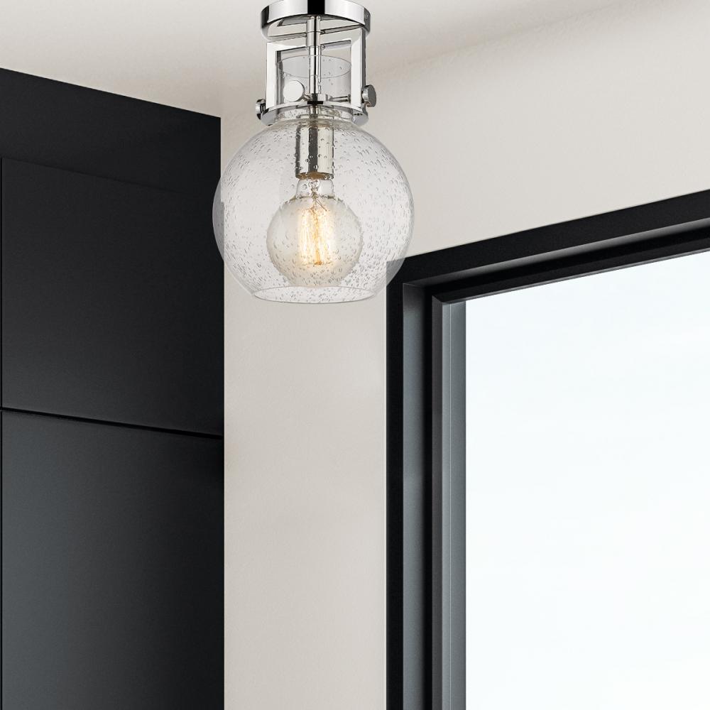 Newton Sphere - 1 Light - 8 inch - Polished Nickel - Seedy Shade - Semi-Flush Mount