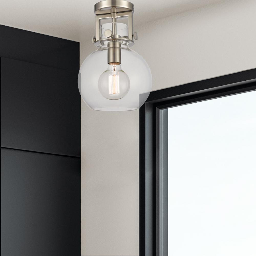 Newton Sphere - 1 Light - 8 inch - Satin Nickel - Clear Shade - Semi-Flush Mount