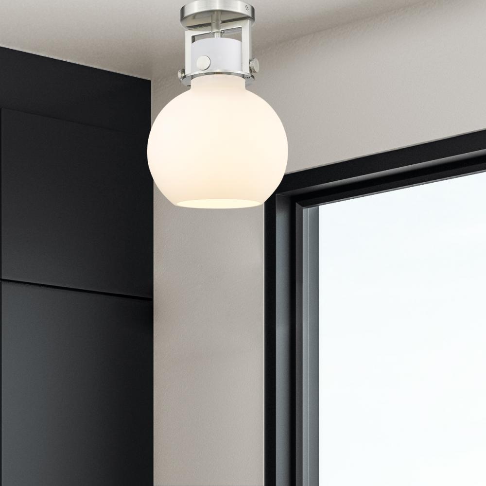 Newton Sphere - 1 Light - 8 inch - Satin Nickel - White Shade - Semi-Flush Mount