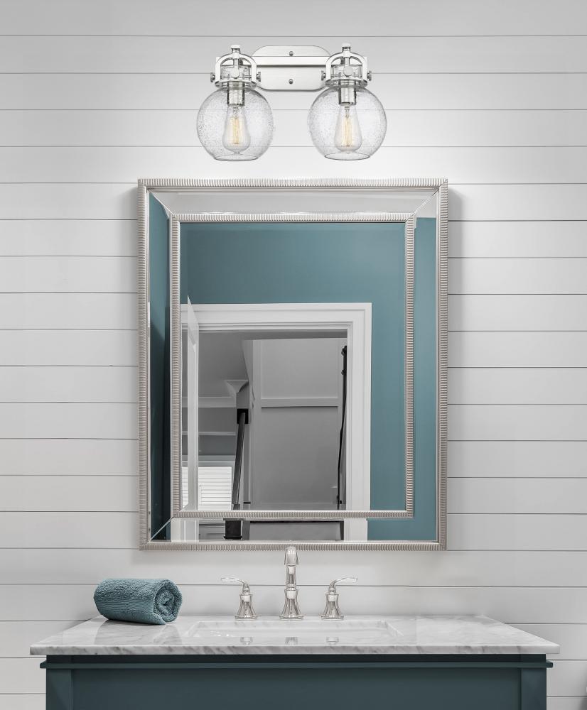 Newton Sphere - 2 Light - 17 inch - Brushed Satin Nickel - Seedy Shade - Bath Vanity Light