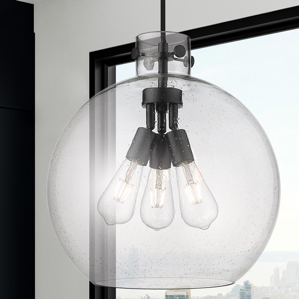 Newton Sphere - 3 Light - 16 inch - Matte Black - Seedy Shade - Cord hung - Pendant