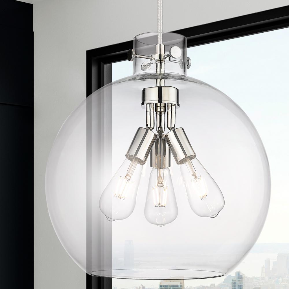 Newton Sphere - 3 Light - 16 inch - Polished Nickel - Clear Shade - Cord hung - Pendant