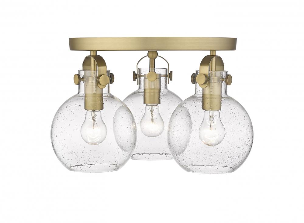 Newton Sphere - 3 Light - 18 inch - Brushed Brass - Seedy Shade - Semi-Flush Mount