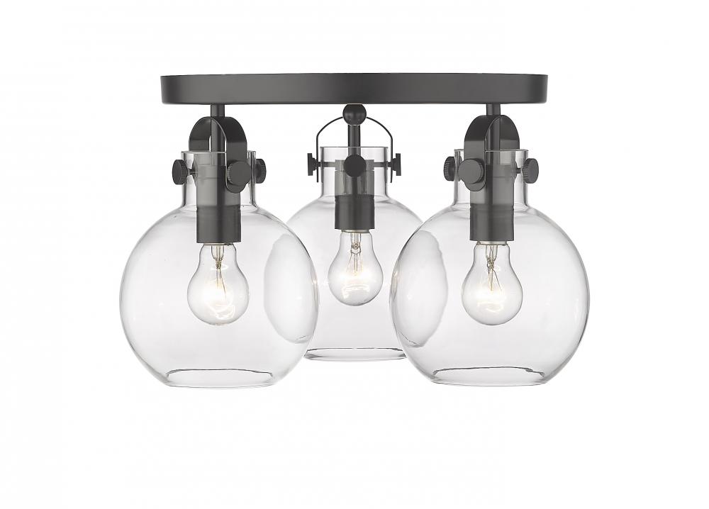 Newton Sphere - 3 Light - 18 inch - Matte Black - Clear Shade - Semi-Flush Mount