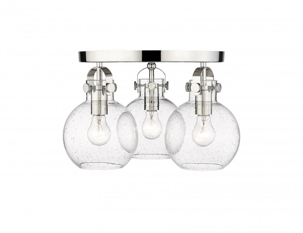 Newton Sphere - 3 Light - 18 inch - Polished Nickel - Seedy Shade - Semi-Flush Mount
