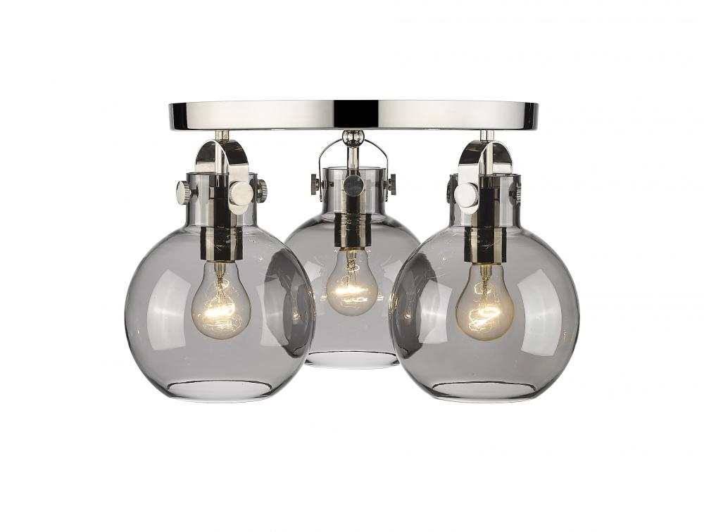 Newton Sphere - 3 Light - 18 inch - Polished Nickel - Light Smoke Shade - Semi-Flush Mount