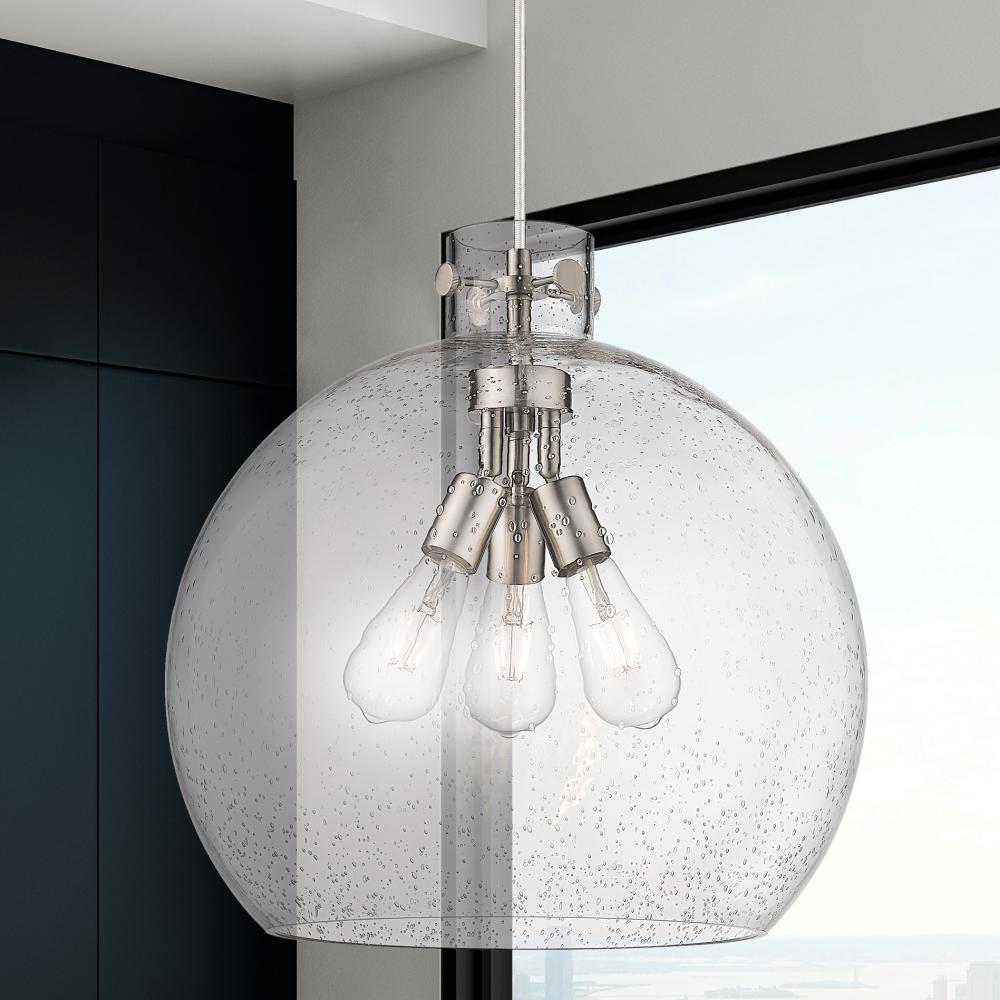 Newton Sphere - 3 Light - 18 inch - Satin Nickel - Seedy Shade - Cord hung - Pendant
