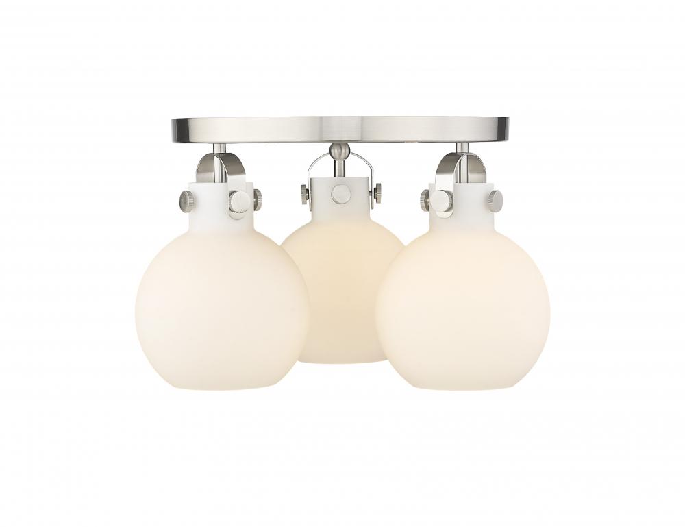 Newton Sphere - 3 Light - 18 inch - Satin Nickel - White Shade - Semi-Flush Mount