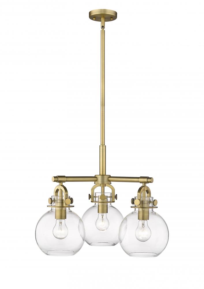 Newton Sphere - 3 Light - 21 inch - Brushed Brass - Clear Shade - Pendant