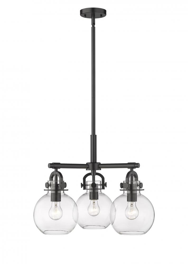 Newton Sphere - 3 Light - 21 inch - Matte Black - Clear Shade - Pendant