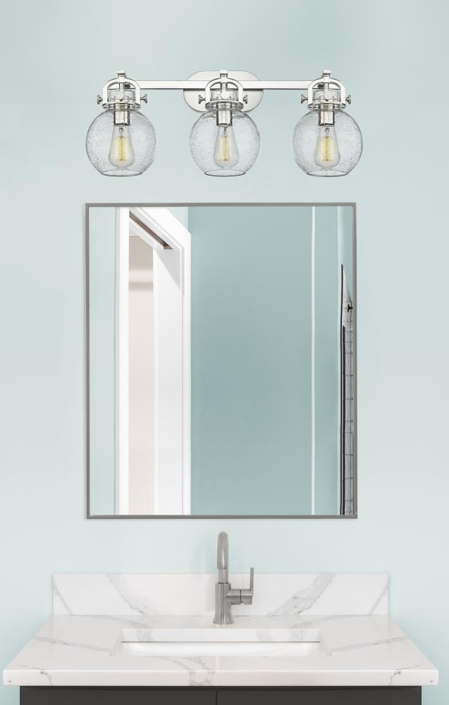 Newton Sphere - 3 Light - 27 inch - Brushed Satin Nickel - Seedy Shade - Bath Vanity Light
