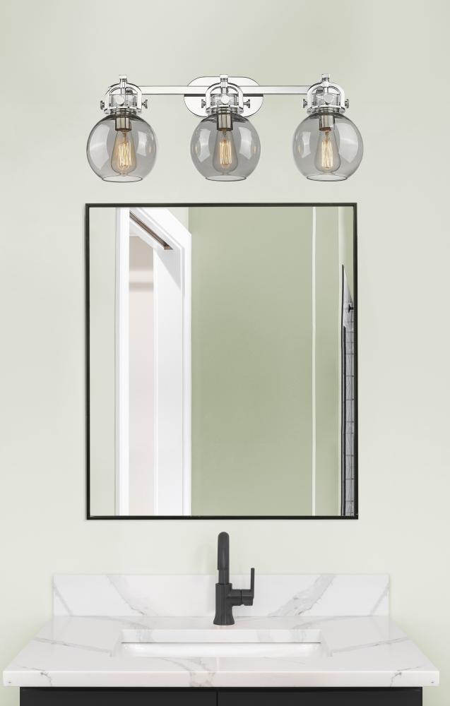 Newton Sphere - 3 Light - 27 inch - Polished Nickel - Light Smoke Shade - Bath Vanity Light