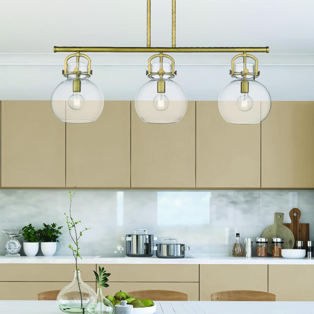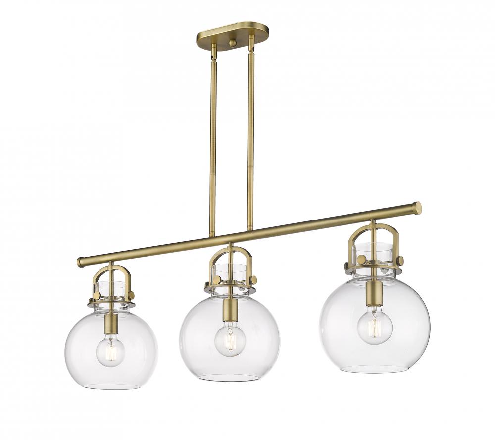 Newton Sphere - 3 Light - 42 inch - Brushed Brass - Clear Shade - Island Light
