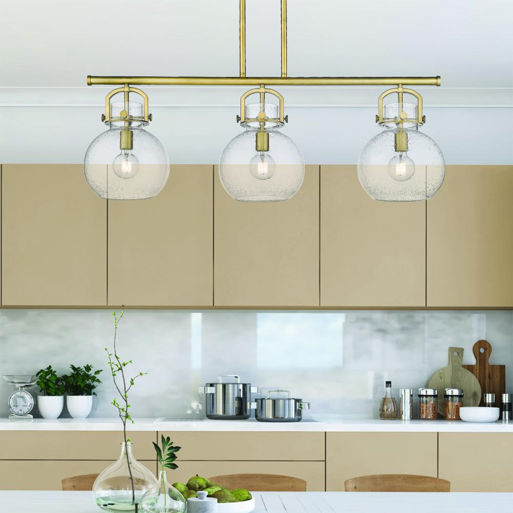Newton Sphere - 3 Light - 42 inch - Brushed Brass - Seedy Shade - Island Light