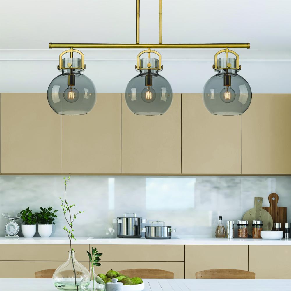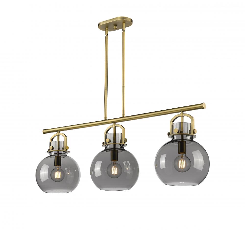 Newton Sphere - 3 Light - 42 inch - Brushed Brass - Light Smoke Shade - Island Light