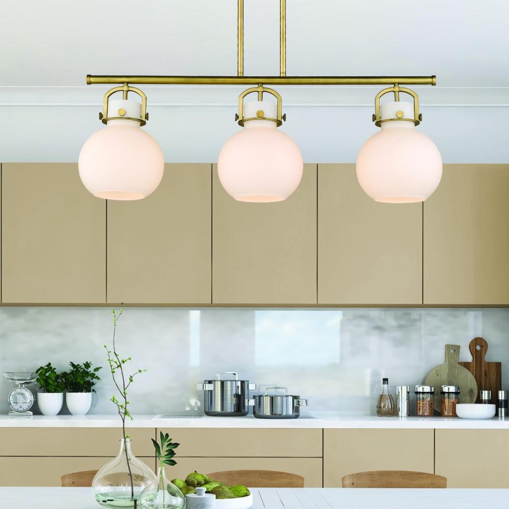 Newton Sphere - 3 Light - 42 inch - Brushed Brass - White Shade - Island Light