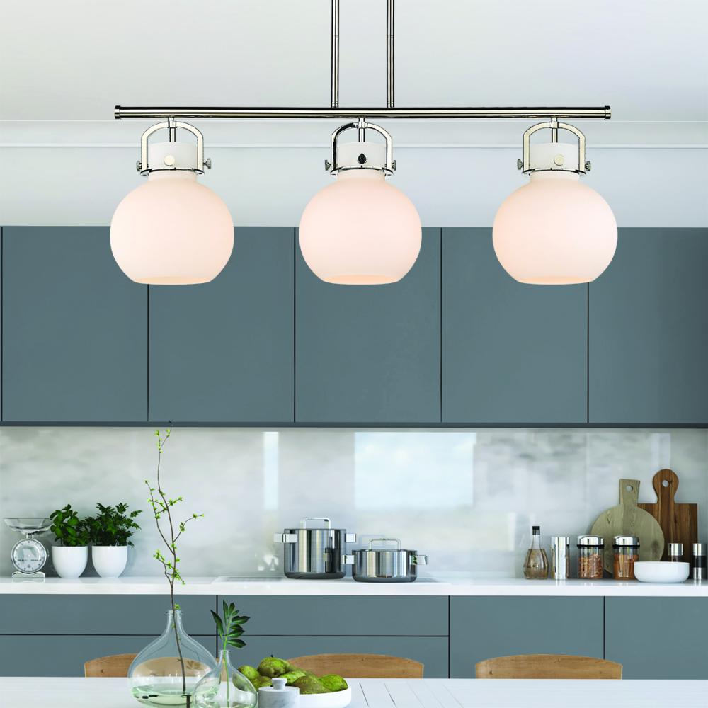 Newton Sphere - 3 Light - 42 inch - Polished Nickel - White Shade - Island Light