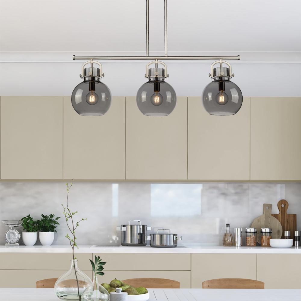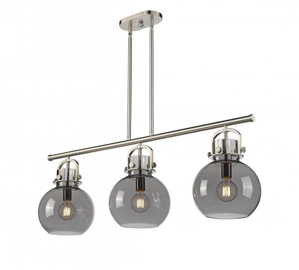 Newton Sphere - 3 Light - 42 inch - Satin Nickel - Light Smoke Shade - Island Light