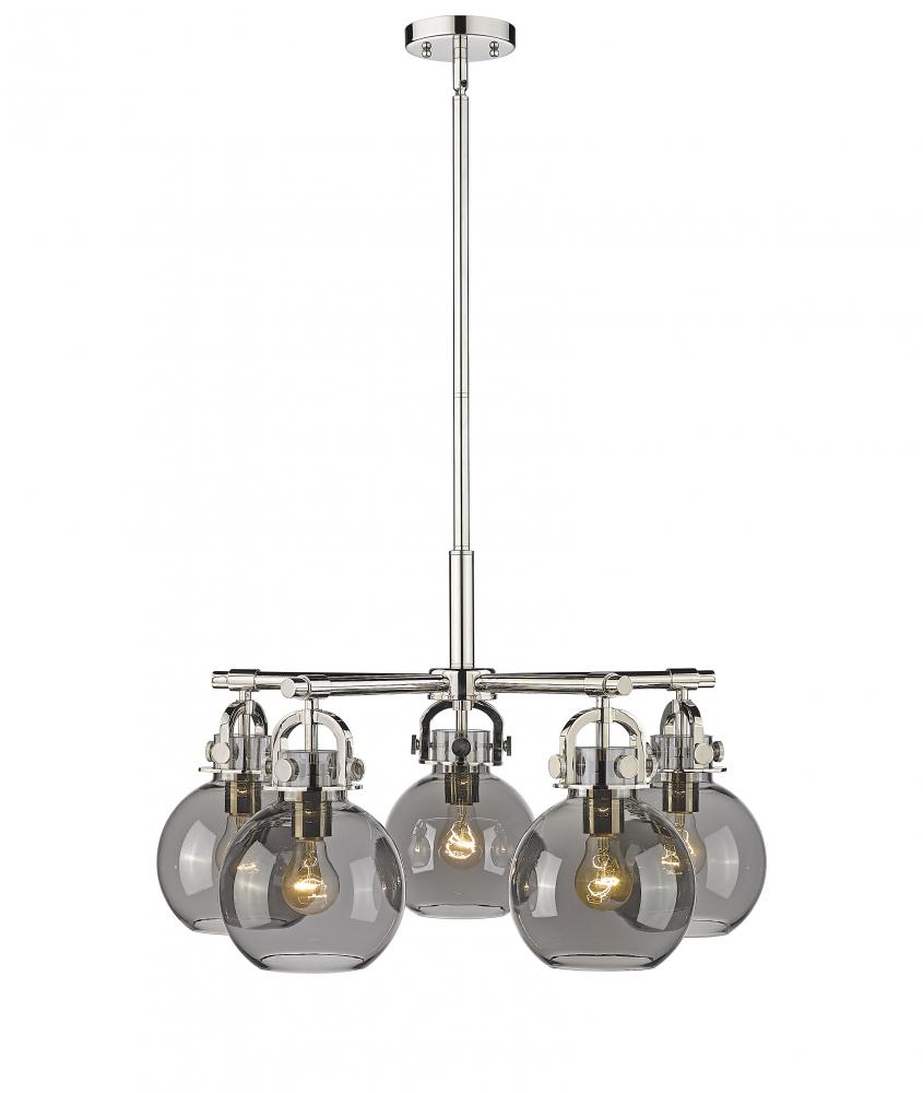 Newton Sphere - 5 Light - 26 inch - Polished Nickel - Light Smoke Shade - Chandelier