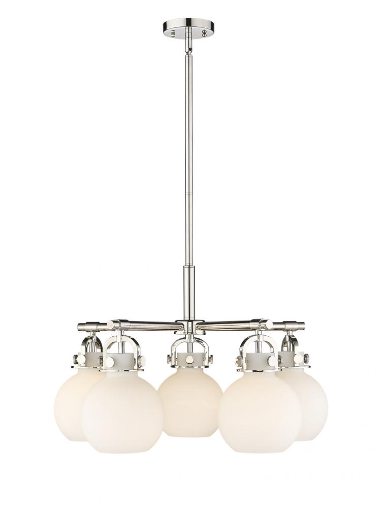 Newton Sphere - 5 Light - 26 inch - Polished Nickel - White Shade - Chandelier