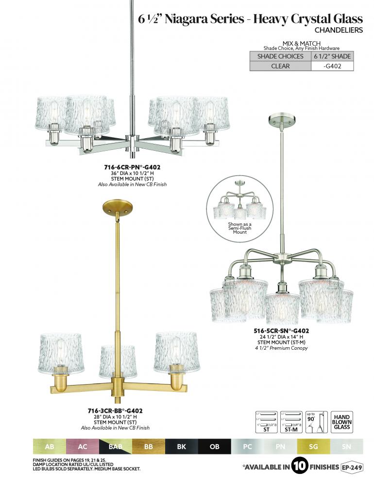 Niagara - 6 Light - 36 inch - Antique Brass - Clear shade - Stem hung - Chandelier