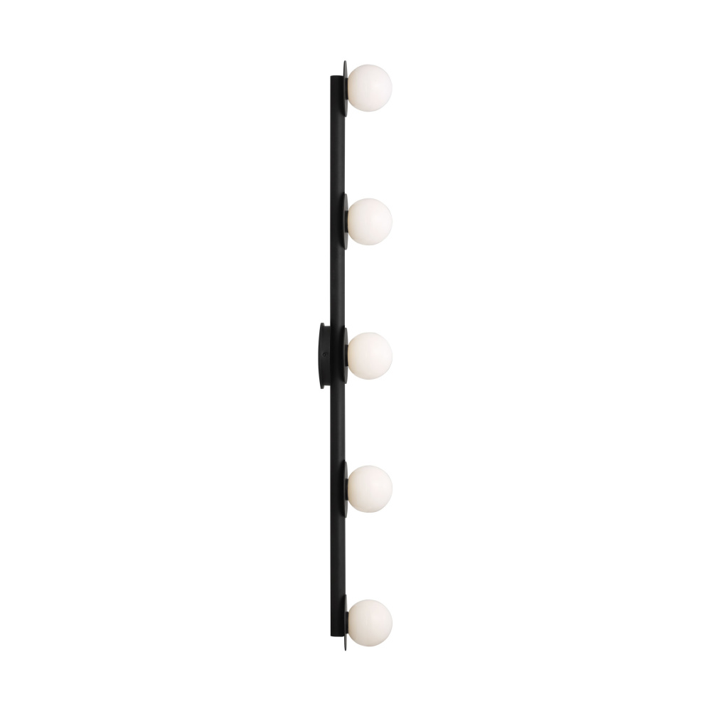The Nodes task, ceiling, and wall lighting is minimal yet bold, highlighting Kelly Wearstler's distinctive juxtaposition of mixed-materiality and curvilinear form. Light radiates from milk glass globes set against metal discs. All fixtures can be used or without the discs. The cast canopy is available in Burnished Brass, Midnight Black or Polished Nickel. Hanging fixtures within this family feature black fabric cords, while pivot sconces can be cord and plug or hard wire.