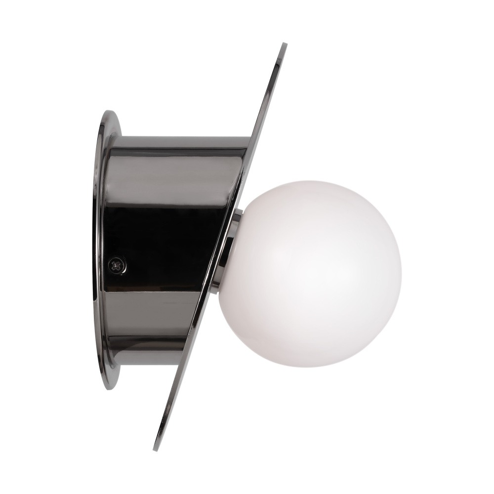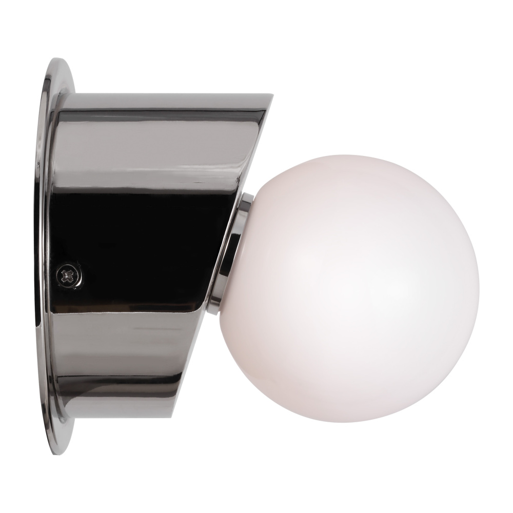 Nodes task, ceiling and wall lighting are minimal yet bold, highlighting Kelly's distinctive juxtaposition of mixed-materiality and curvilinear form. Light radiates from milk glass globes. Hanging fixtures within this family feature black fabric cords, while pivot sconces can be a cord, plug, or hard wire.